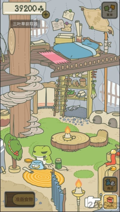 2、“包包”里的东西点了“完成”、让这2个字变暗了、才表示准备好了出行物品、青蛙在家里时过一段时间才会带上包里的物品出行。“桌子”上的物品放好后一般不要点“收拾”、不然就收走了。