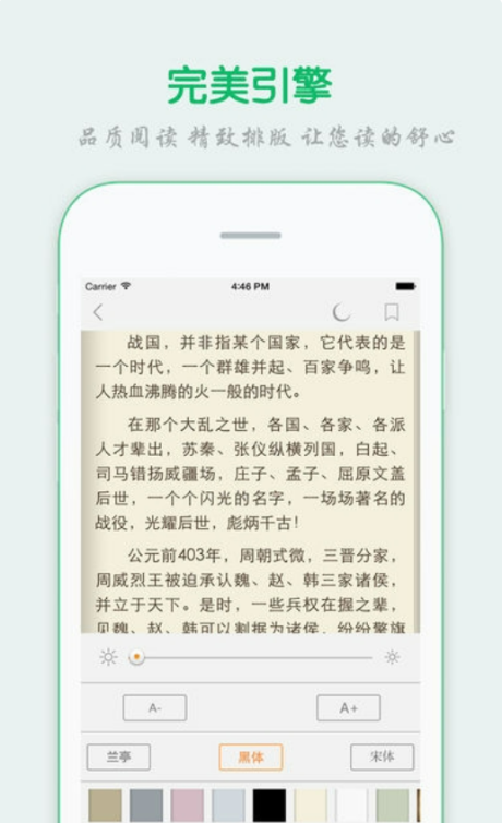 全屏阅读、书签收藏、智能记忆上次阅读位置、白天/夜间/养眼模式等最符合书友阅读习惯的贴心设计。
