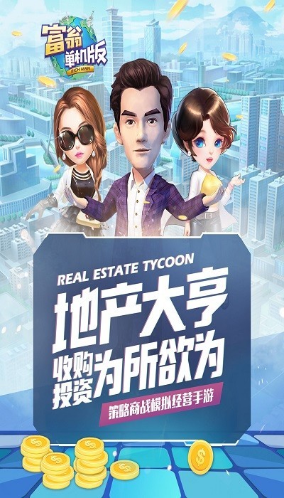 富翁单机版是一个房地产开发的经营冒险游戏,操作简单,使得屏幕中的房子,车子,只需左右移动动物头像,轮船及宝箱图标全被骰子击落即可!