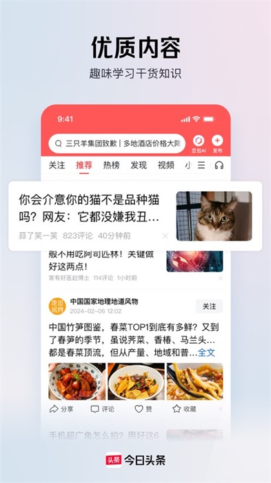 千万高清视频播放无广告,新鲜内容极速呈现,随时随地超级省流量!更有超过 44万家头条号每日为你创作新鲜精彩内容,不远游,知天下。24 小时刷不停,填充你所有碎片时间。