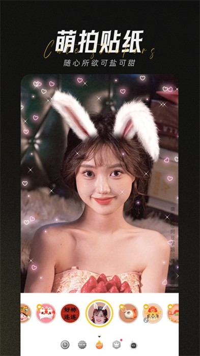 各种搞趣动态贴纸,智能人脸识别,帮你一键贴准脸部表情,胡子、腮红、泪奔、耳朵、蝴蝶结、发卡等一键贴准,边走边玩,再也不用费力校准了。