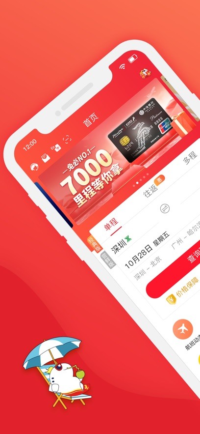 掌上预订国内/国际单程/往返机票,支持在线退改签升舱服务
