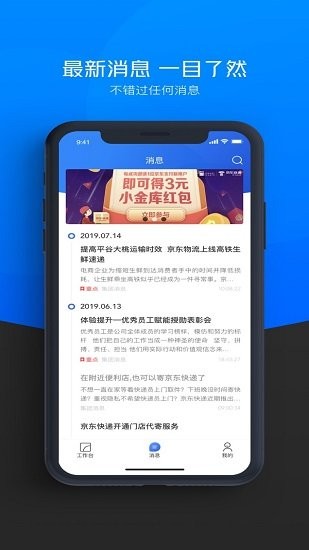 作为京东配送员专属的移动办公软件,配送员在手机上使用erp账号登录,可以方便的完成日常移动办公和个人业务数据查询分享等功能。