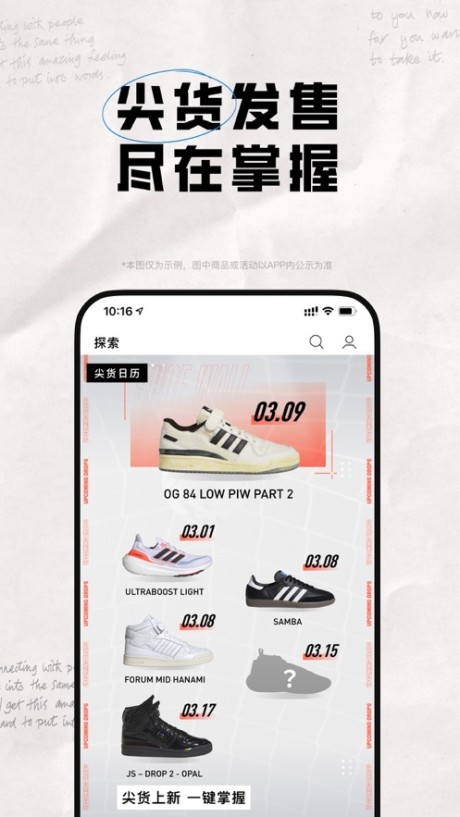 - 加入adiclub,享受部分限量版产品抢先预定机会以及会员专属折扣