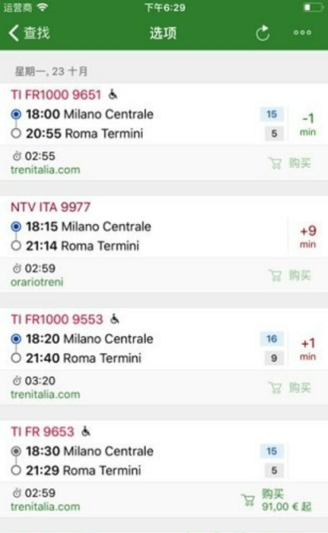 意大利火车时刻表查询苹果版功能